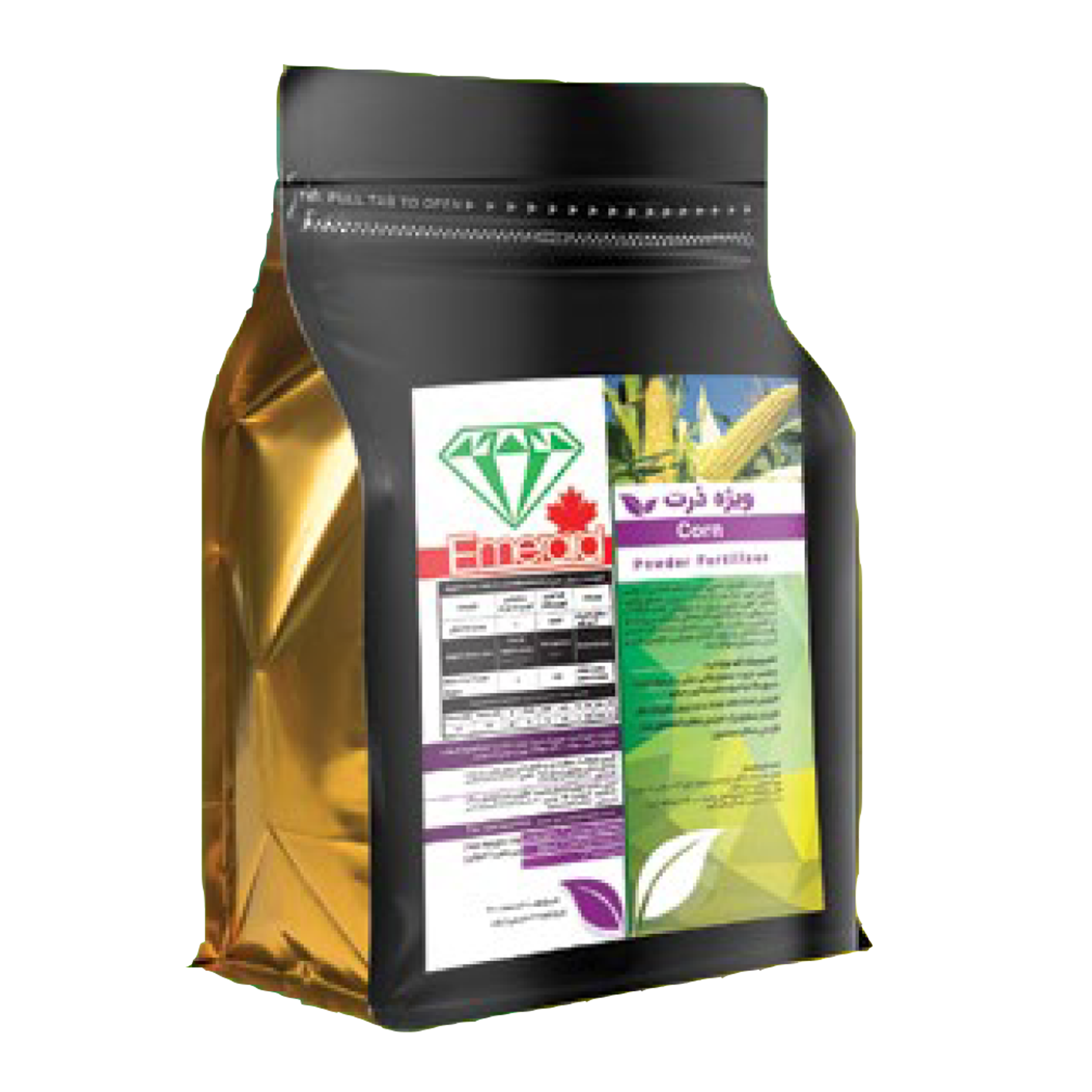 کود ذرت با فرمول خاص دارای درصد مناسبی از عناصر غذایی مورد نیاز ذرت از جمله نیتروژن، فسفر، پتاس، منگنز، آهن، مس و روی به فرم های کلات EDTA و سیدروفور به همراه اسید آمینه های مختلف میباشد.که در کمترین زمان و بالاترین راندمان، جذب گیاه شده و باعث شادابی و طراوت گیاه و همچنین افزایش کمی و کیفی محصول خواهد شد.