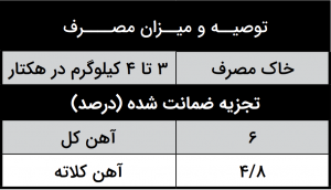 این محصول حاوی غلظت 6 درصد آهن با قابلیت جذب بالا از طریق برگ و ریشه می باشد.